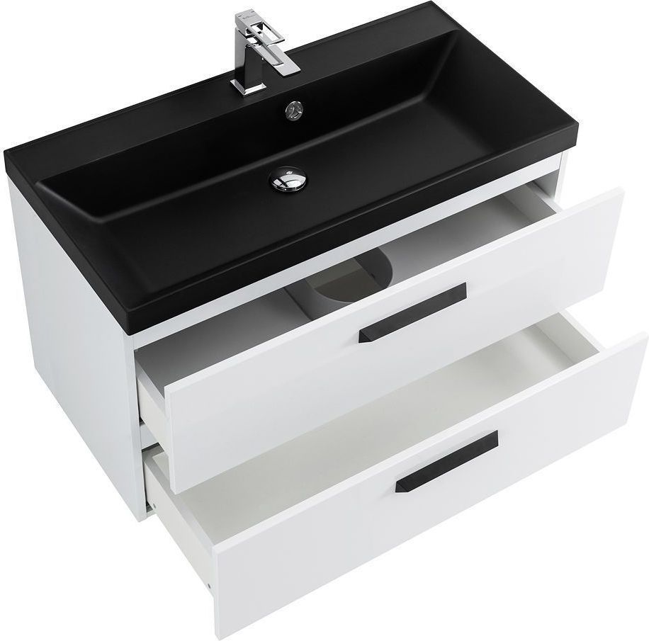 Тумба подвесная BelBagno Aurora 80 см с раковиной BB800/450-LV-ART-AST-NERO, цвет Bianco Lucido. Ручки на выбор, приобретаются отдельно.