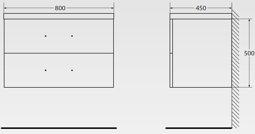 - База под раковину подвесная с двумя выдвижными ящиками