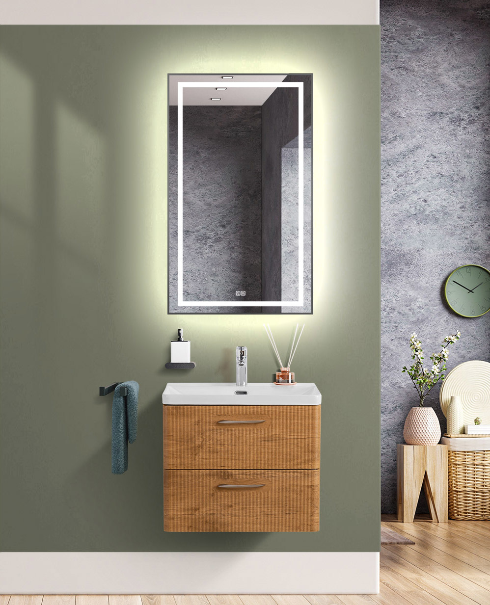 Тумба подвесная с раковиной BelBagno DUE-500-2C-SO-RN-P 50 см (2 ручки сатин) Rovere Nature