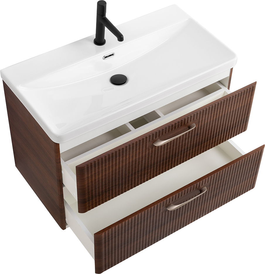 Тумба подвесная с раковиной BelBagno DUE-800-2C-SO-NOCE-P 80 см (2 ручки сатин) Noce