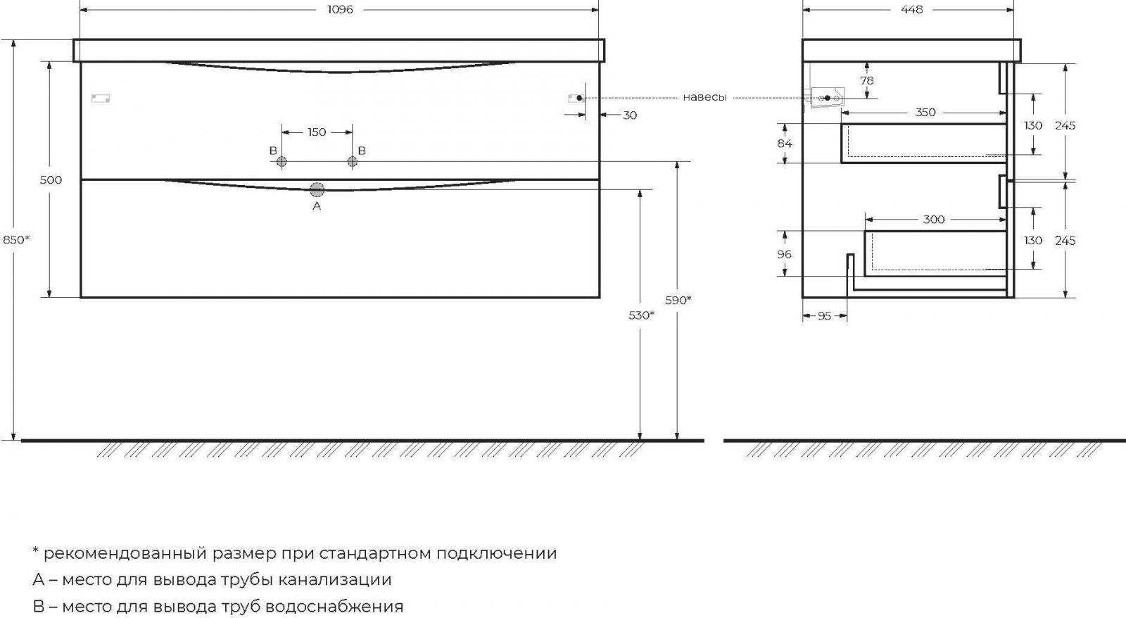Характеристики тумба с раковиной BelBagno (MARINO-1100-2C-SO-NL-P+BB1100/450-LV-MR-PR)