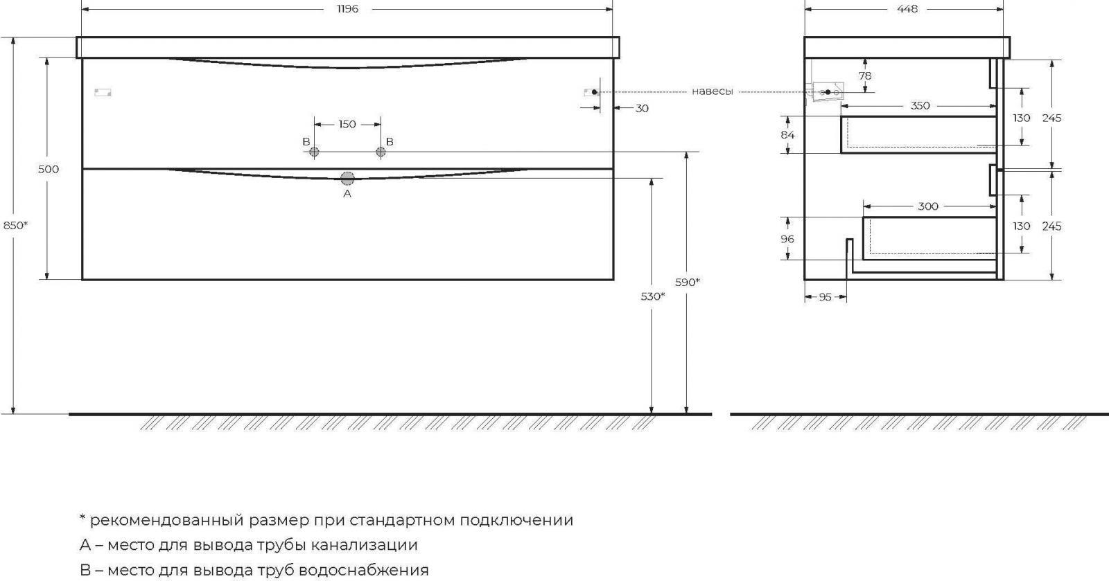 - База под раковину подвесная с двумя выдвижными ящиками