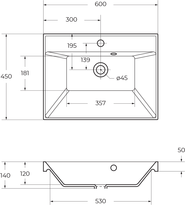 - База под раковину подвесная с двумя выдвижными ящиками