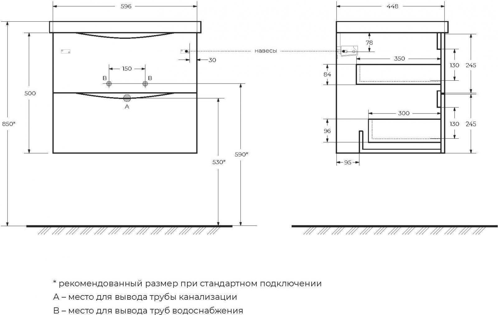 - База под раковину подвесная с двумя выдвижными ящиками