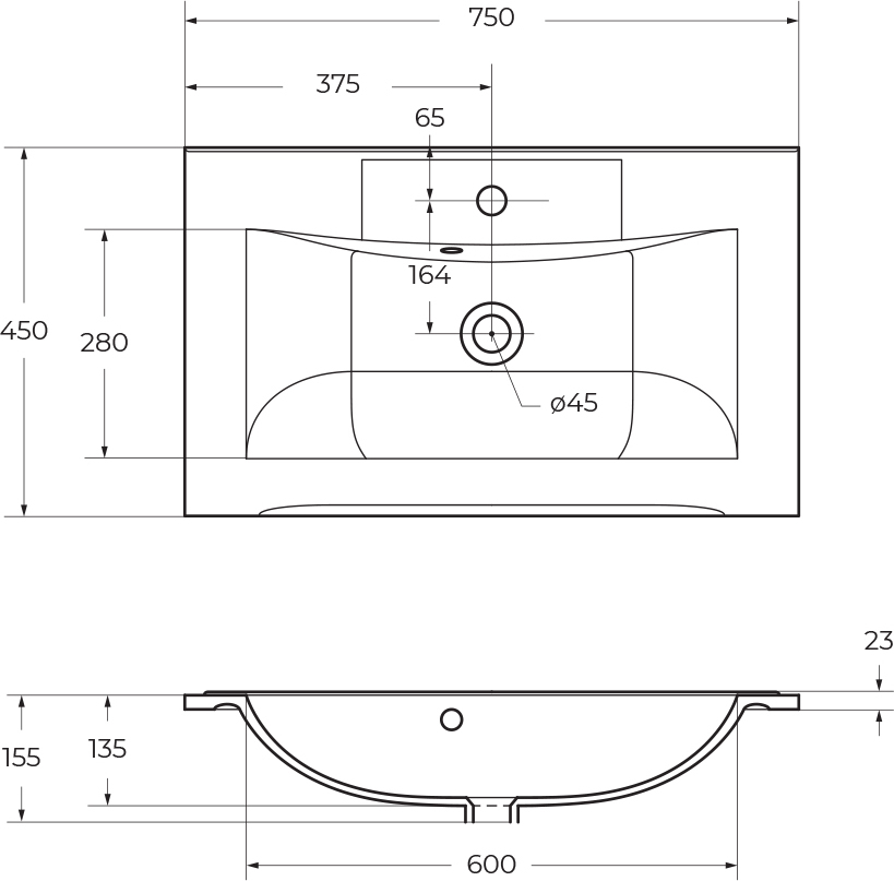 - База под раковину подвесная с двумя выдвижными ящиками