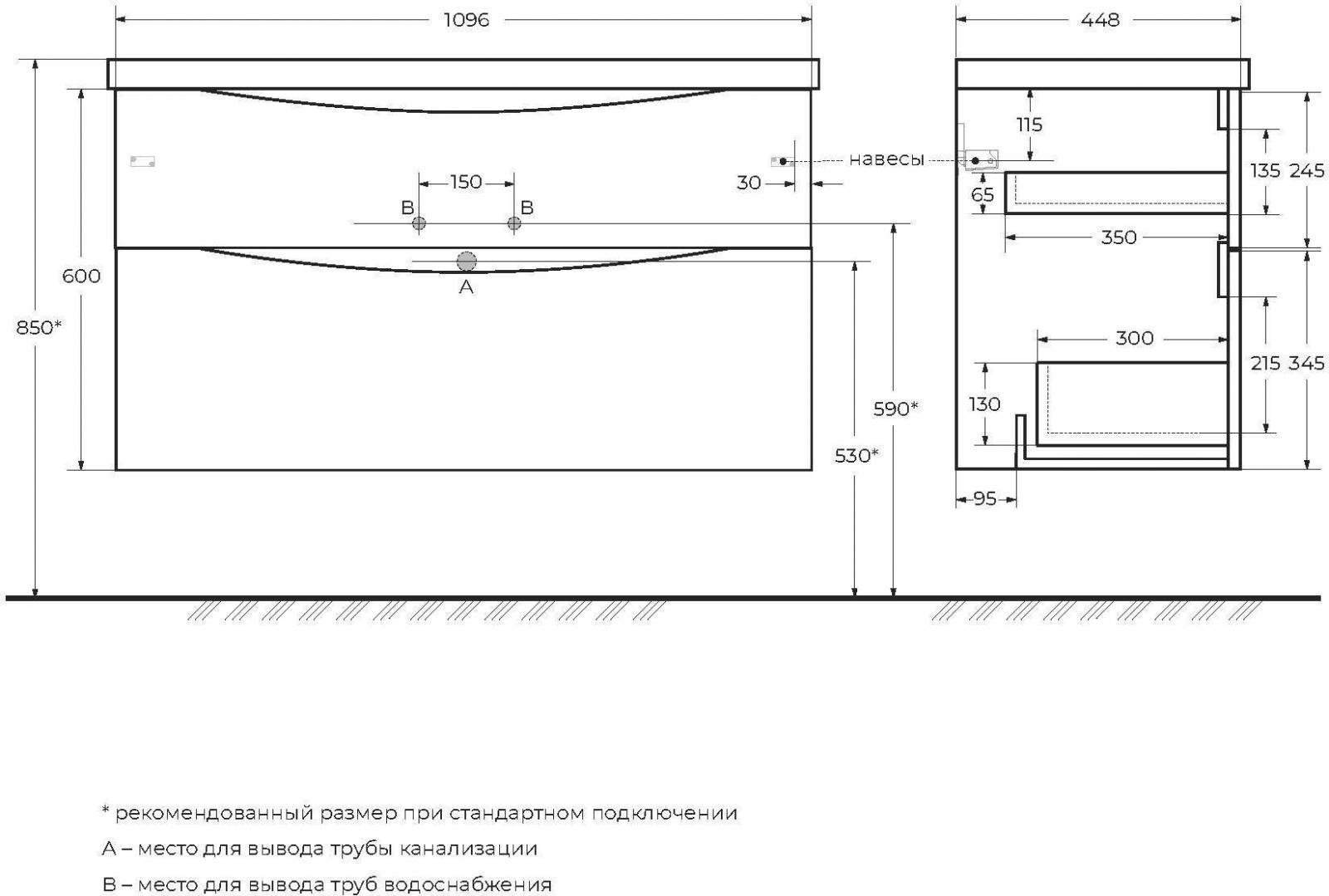 - Увеличенная глубина нижнего ящика, большая вместимость по сравнению с тумбами стандартных размеров