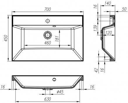 - Материал раковины: литьевой мрамор