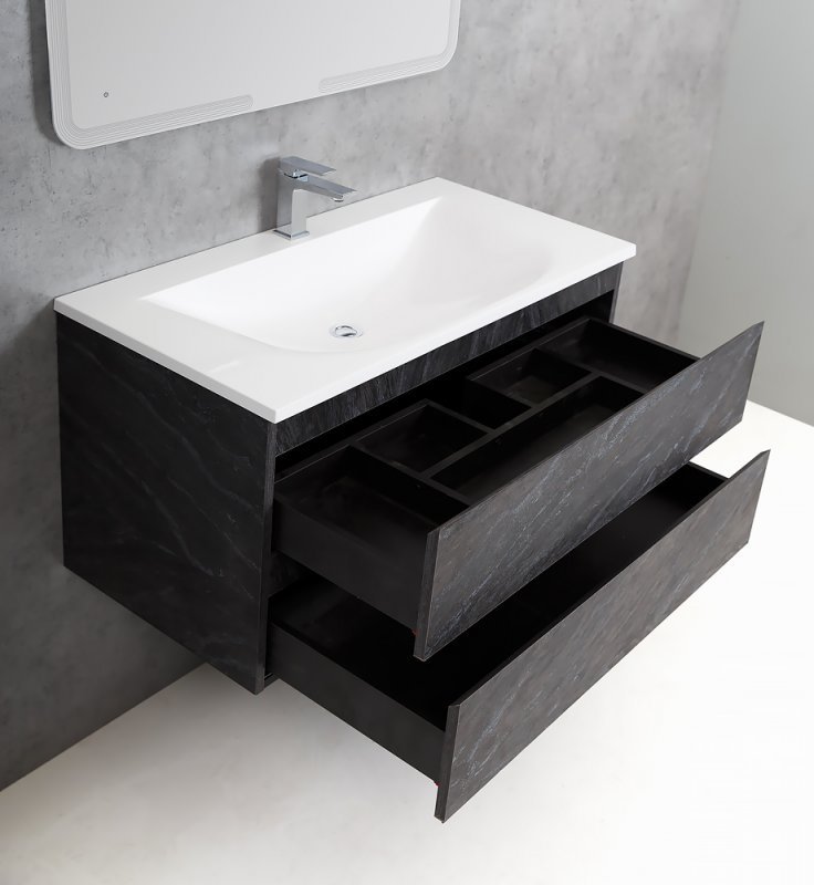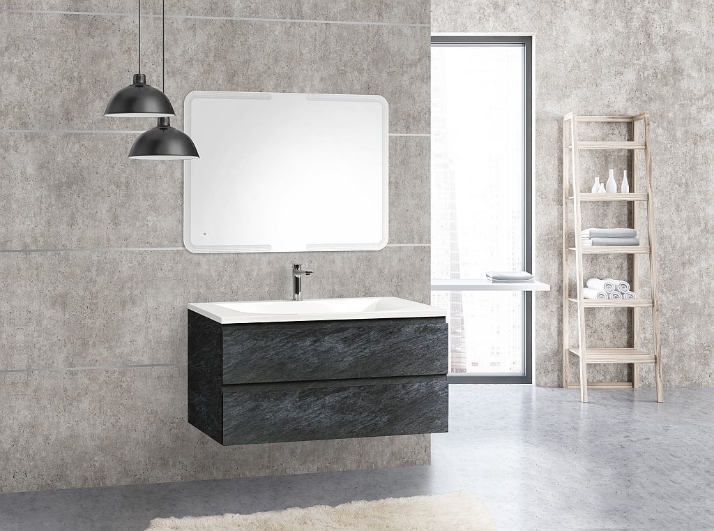 Тумба подвесная Cezares Molveno 100 см с раковиной из литьевого мрамора CEZ1000/500-LV-MR, цвет - Antracite.