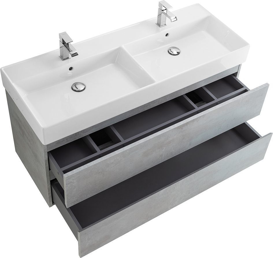 Тумба подвесная с раковиной Cezares MOLVENO 46-120-2C-SO-2-BET 120 см (раковина CZR-MIL-120-2-LVB), Beton