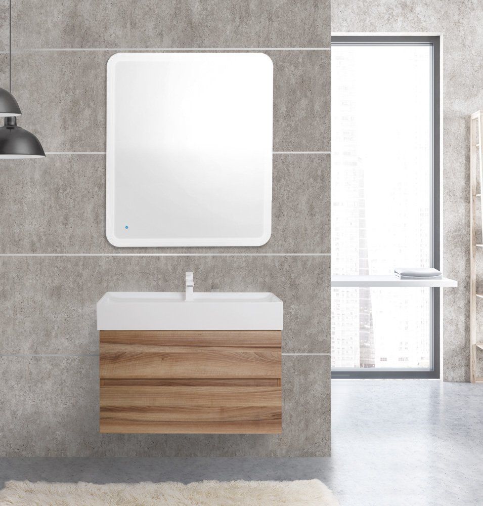 Тумба подвесная Cezares Molveno 80 см с раковиной Tecla Touch TC05011, цвет - Noce Nature.