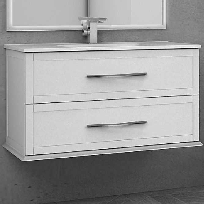 Тумба подвесная Cezares Tiffany 100 см с раковиной 50200, цвет - Bianco opaco. В стоимость мебели входят ручки в исполнении хром, ручки в исполнении золото приобретаются отдельно.