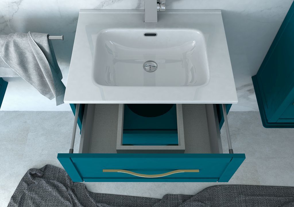 Тумба подвесная Cezares Tiffany 60 см с раковиной 50202, цвет - Blu Petrolio. В стоимость мебели входят ручки в исполнении хром, ручки в исполнении золото приобретаются отдельно.