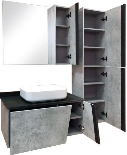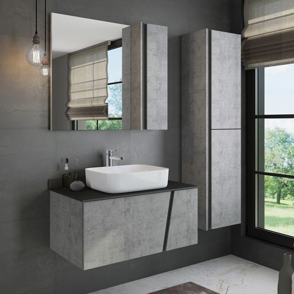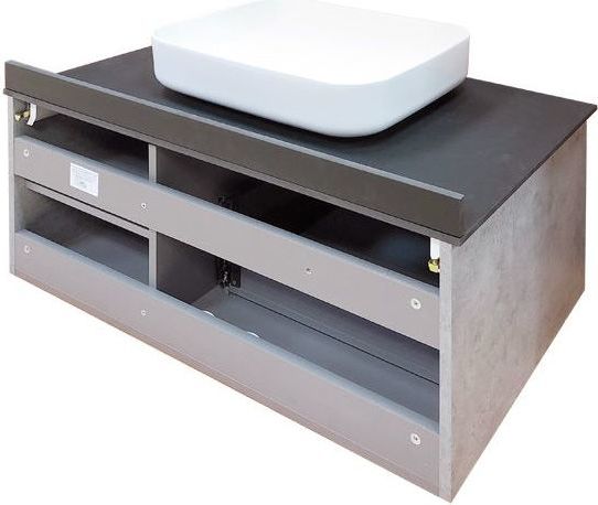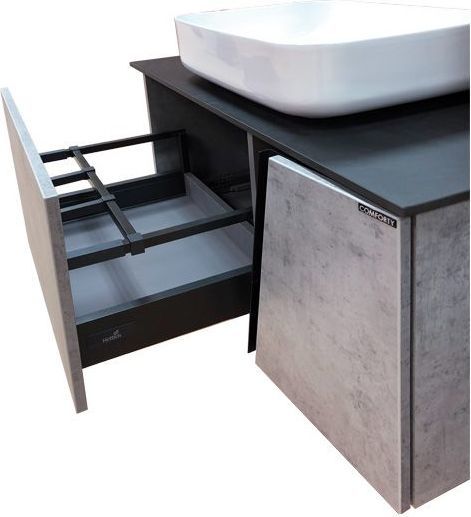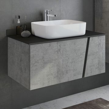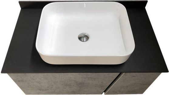Тумба подвесная Comforty Эдинбург 90 см с раковиной Comforty T-Y9378 и с чёрной столешницей, цвет бетон светлый.