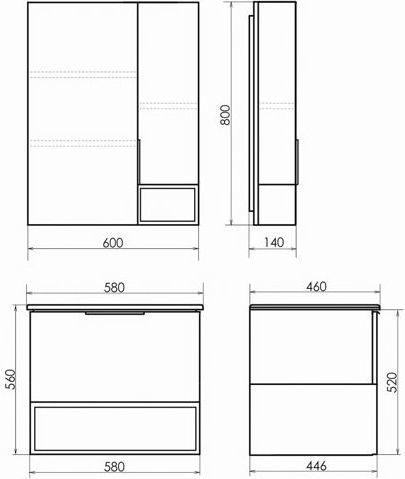 Тумба-умывальник в современном стиле с выкатным ящиком и пространством для открытого хранения. Тумба укомплектована черной матовой алюминиевой ручкой и системой плавного закрывания ящика. Тумба подготовлена для подключения водоснабжения снизу.