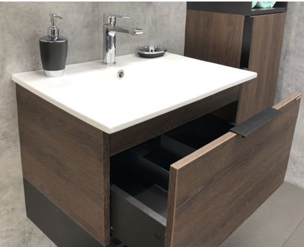 Тумба подвесная Comforty Франкфурт 60 см с раковиной Comforty 60Е, цвет дуб шоколадно-коричневый.