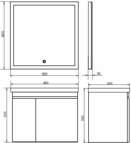 Подвесная тумба-умывальник с глубоким выдвижным ящиком и одной створкой. Петли створки и направляющие ящика оснащены механизмами плавного закрывания. Тумба подготовлена для подключения водоснабжения снизу.