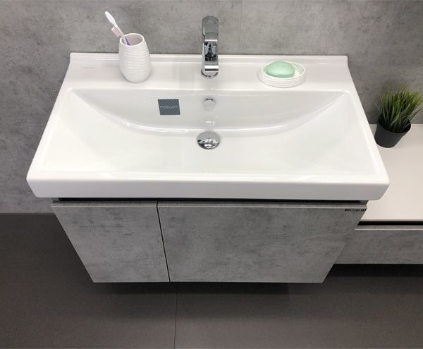 Тумба подвесная Comforty Осло 80 см с раковиной Fest 80, цвет бетон светлый.