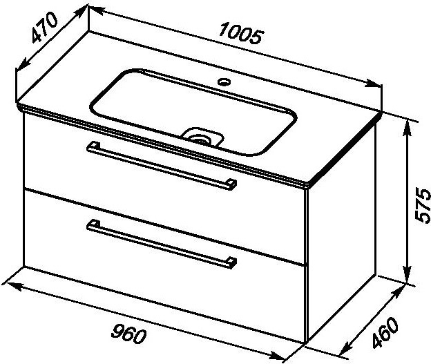 Тумба подвесная с раковиной Dreja Gio 100 см 77.0105W, белый