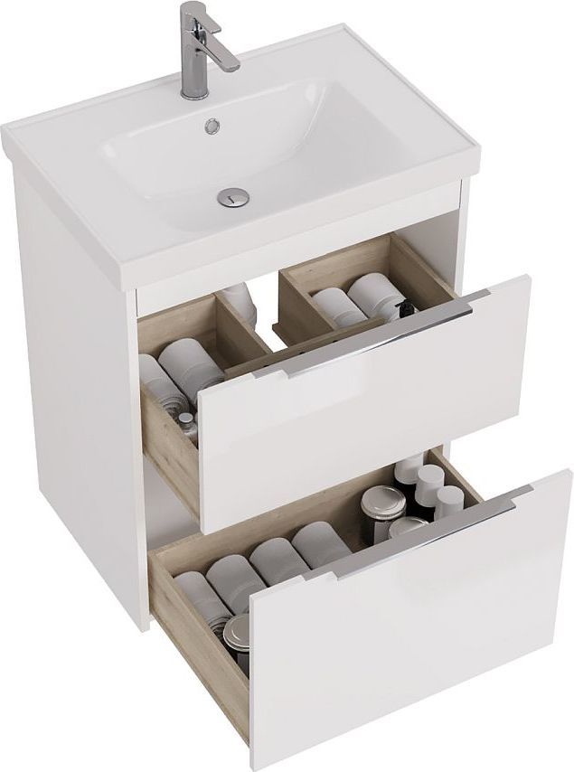 Тумба подвесная с раковиной Dreja Prime 70 см 99.9301, белый глянец