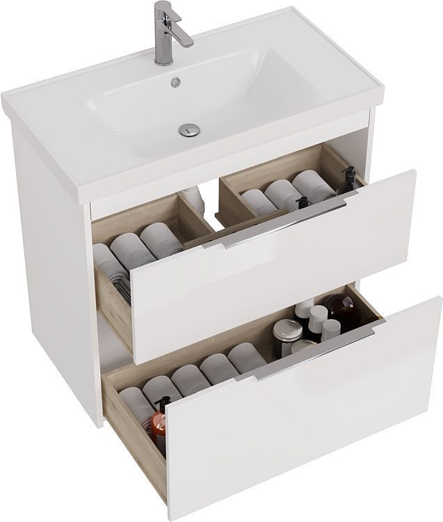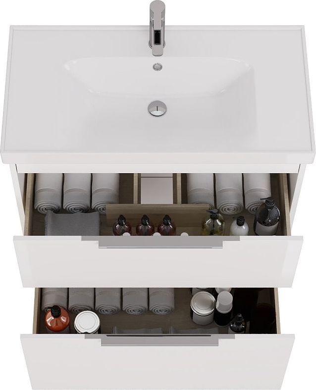 Тумба подвесная Dreja Prime 90 см с раковиной Grace 90 см, 2 ящика, цвет белый глянец.