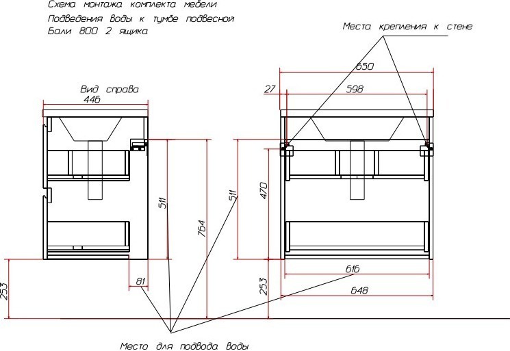 Тумба подвесная с раковиной Эстет Bali 65 см, 2 ящика ФР-00002086