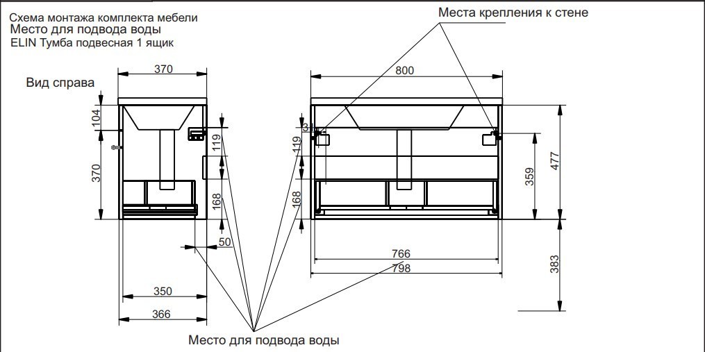 Тумба подвесная с раковиной Эстет Элин 80 см, 1 ящик ФР-00003349