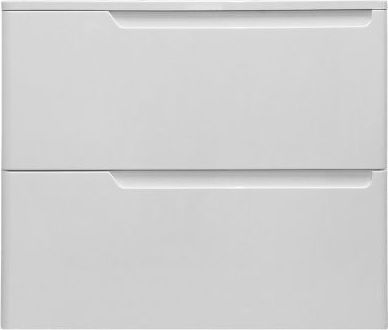 - Подвесная тумба с 2 ящиками укомплектована раковиной из литьевого мрамора с закруглёнными краями, тонким бортиком и изящным вкладышем.