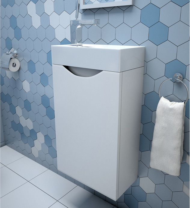 Тумба подвесная с раковиной Эстет Mini 40 см, цвет белый.