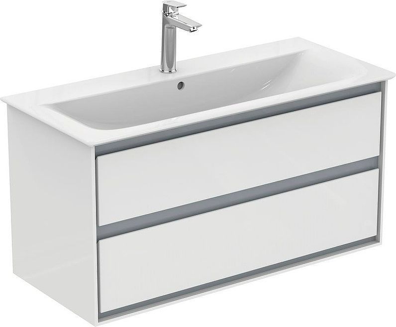 Тумба подвесная Ideal Standard Connect Air 100 см E0821B2 с раковиной Connect Air Vanity 104 см E027401, двумя ящиками системой плавного закрытия и крепежом, цвет белый.