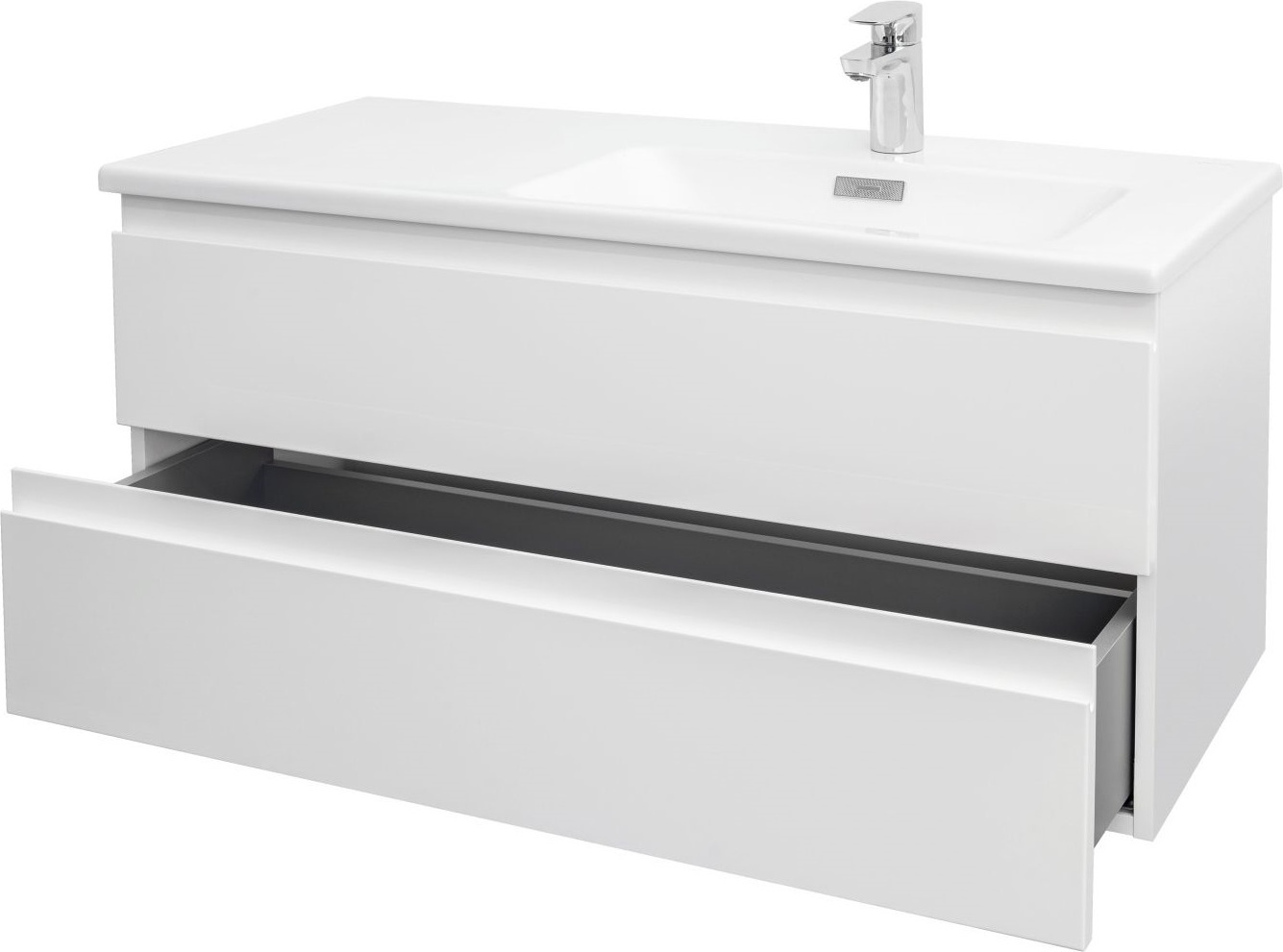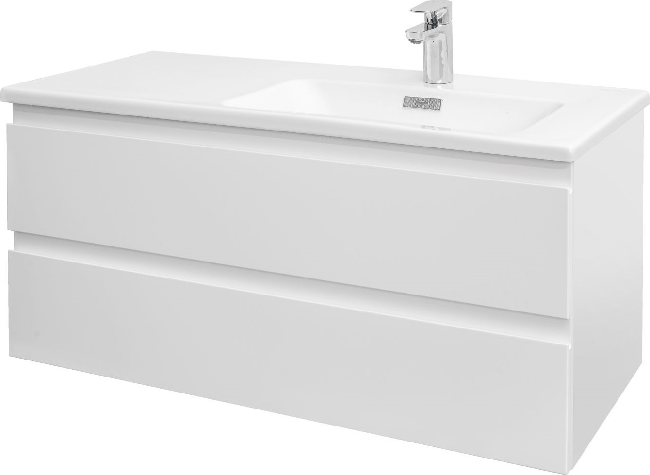 Тумба подвесная Jacob Delafon Madeleine 100 см R EB2055-J5 с раковиной Vox 101х46 EXAD112-Z-00, 2 выдвижных ящика с механизмом «плавное закрывание», цвет белый глянцевый.
