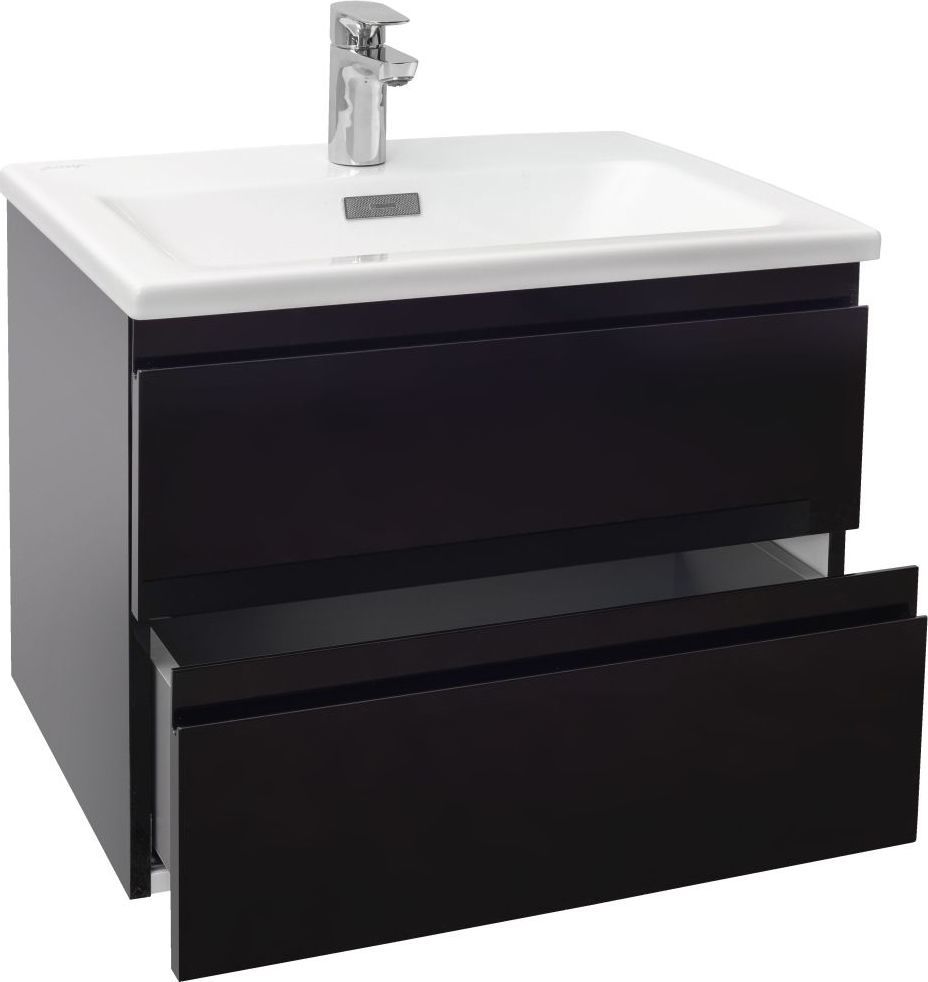 Тумба подвесная Jacob Delafon Madeleine 60 см EB2052-J52 с раковиной Vox 61х46 EXAF112-Z-00, 2 выдвижных ящика с механизмом «плавное закрывание», цвет чёрный глянцевый.