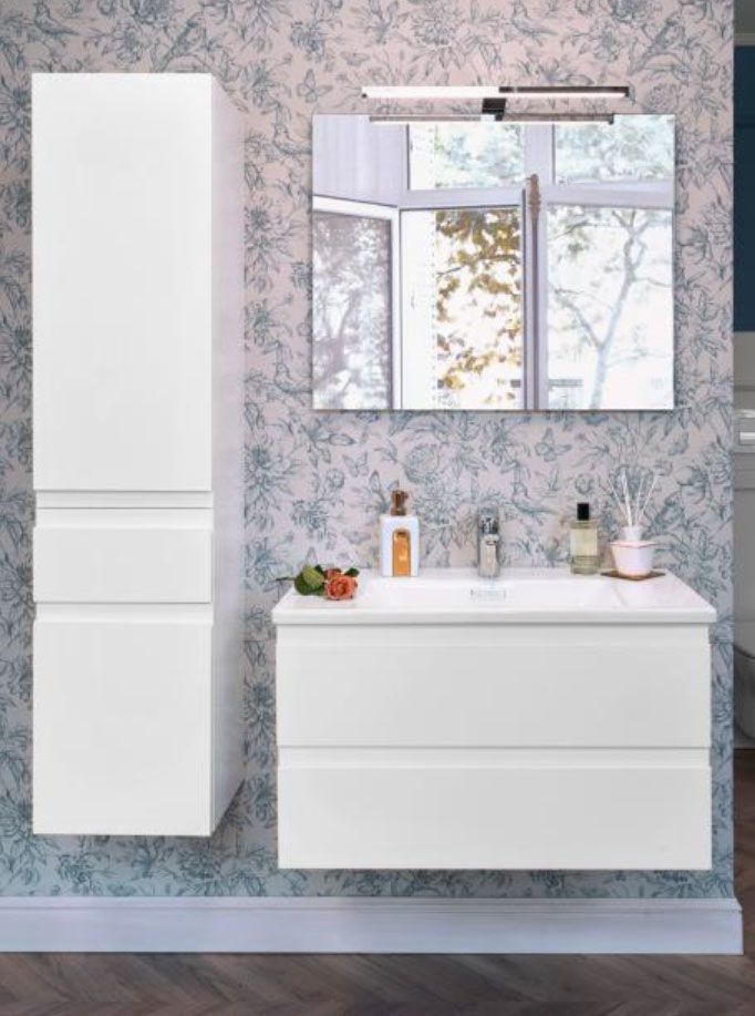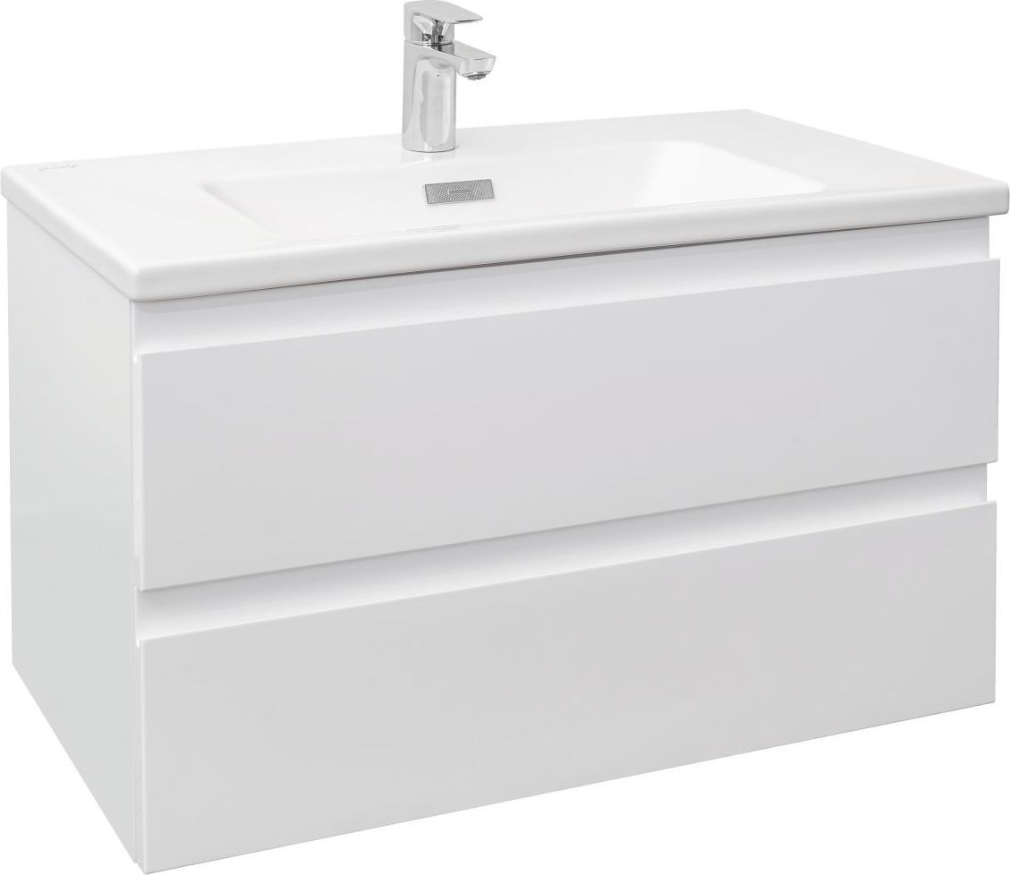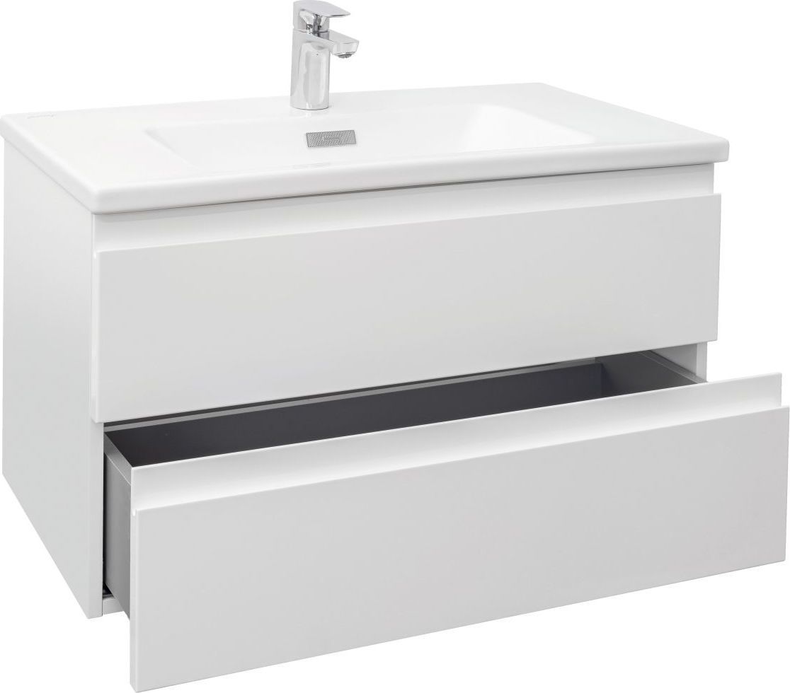 Тумба подвесная Jacob Delafon Madeleine 80 см EB2053-J5 с раковиной Vox 81х46 EXAE112-Z-00, 2 выдвижных ящика с механизмом «плавное закрывание», цвет белый глянцевый.