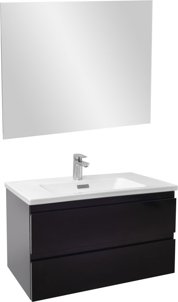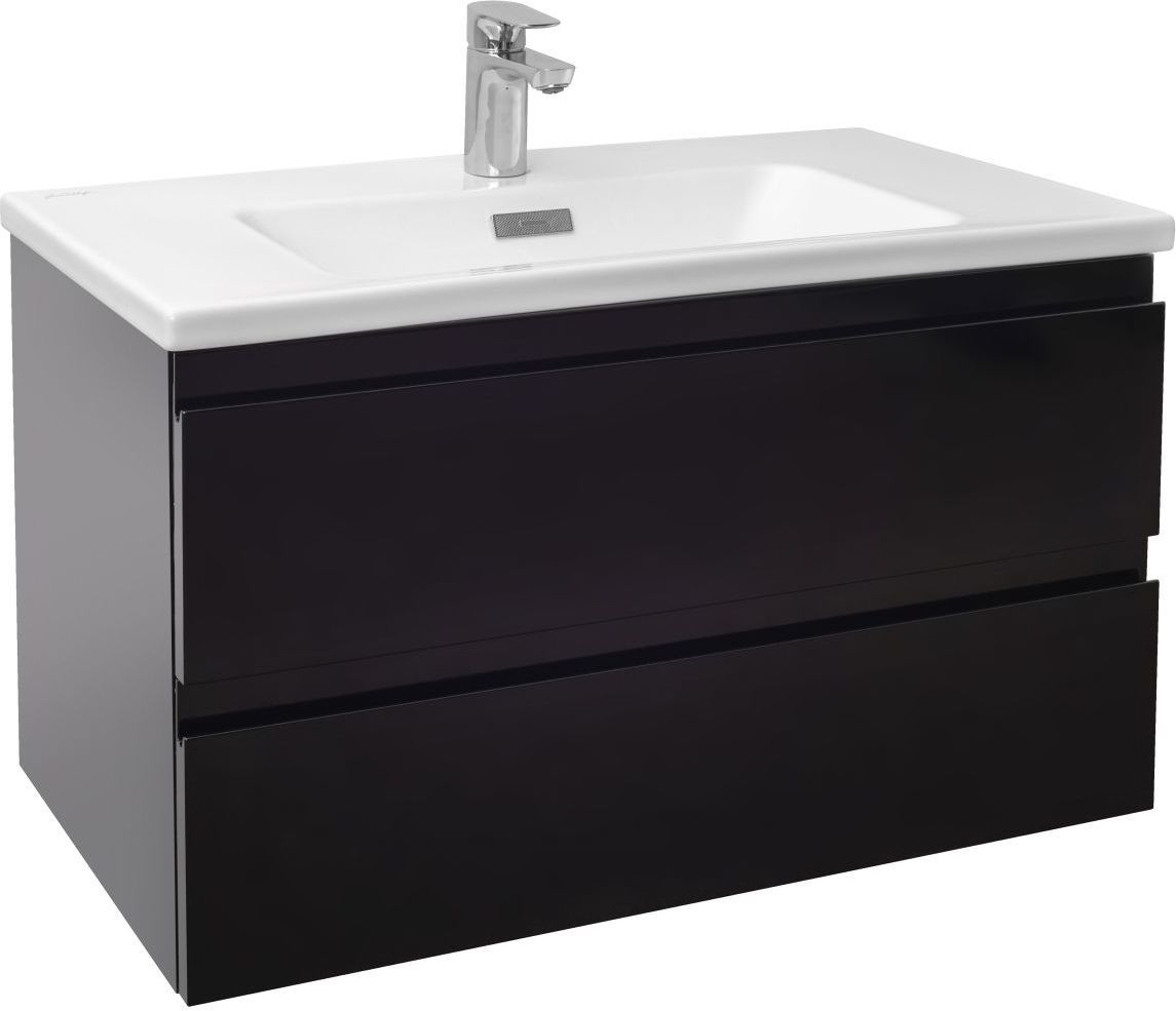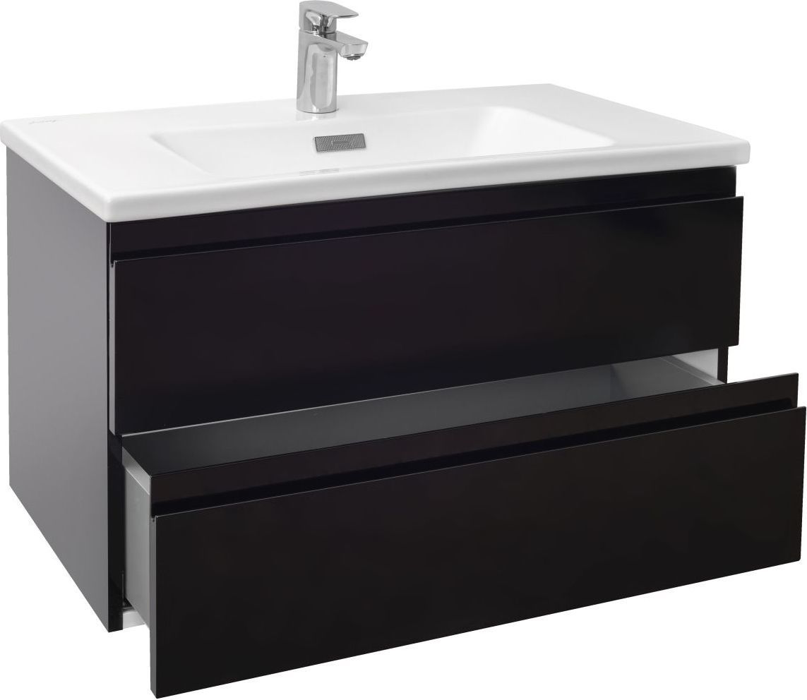 Тумба подвесная Jacob Delafon Madeleine 80 см EB2053-J53 с раковиной Vox 81х46 EXAE112-Z-00, 2 выдвижных ящика с механизмом «плавное закрывание», цвет чёрный матовый.