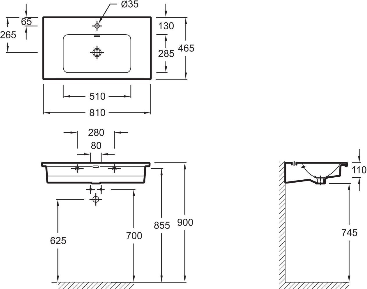 Тумба подвесная с раковиной Jacob Delafon Madeleine 80 см EB2053-J53, чёрный матовый