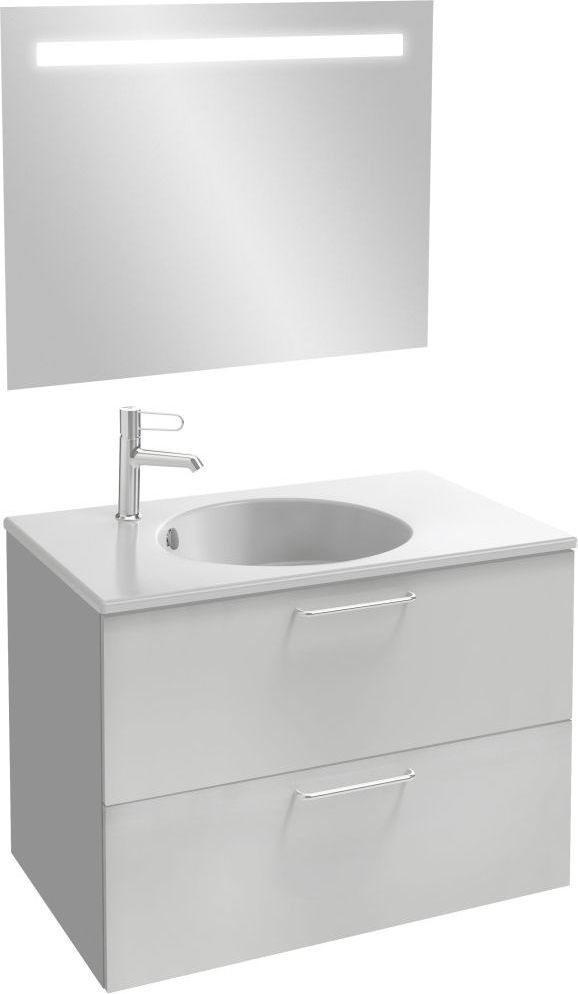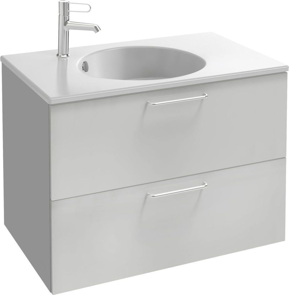 Тумба подвесная Jacob Delafon Odeon Rive Gauche 80 см EB2522-R5-N18 с раковиной Odeon Rive Gauche 81 EXAW112-Z-00, 2 выдвижных ящика с механизмом «плавное закрывание», цвет белый, ручки - хром.