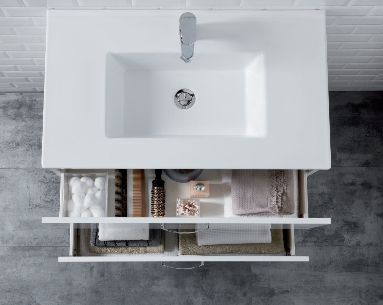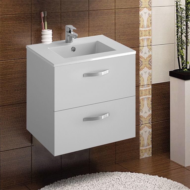Тумба подвесная Jacob Delafon Ola 60 см EB390RU-J5 с раковиной Ola 61 EXSA112-00, 2 выдвижных ящика с механизмом «плавное закрывание», цвет белый.