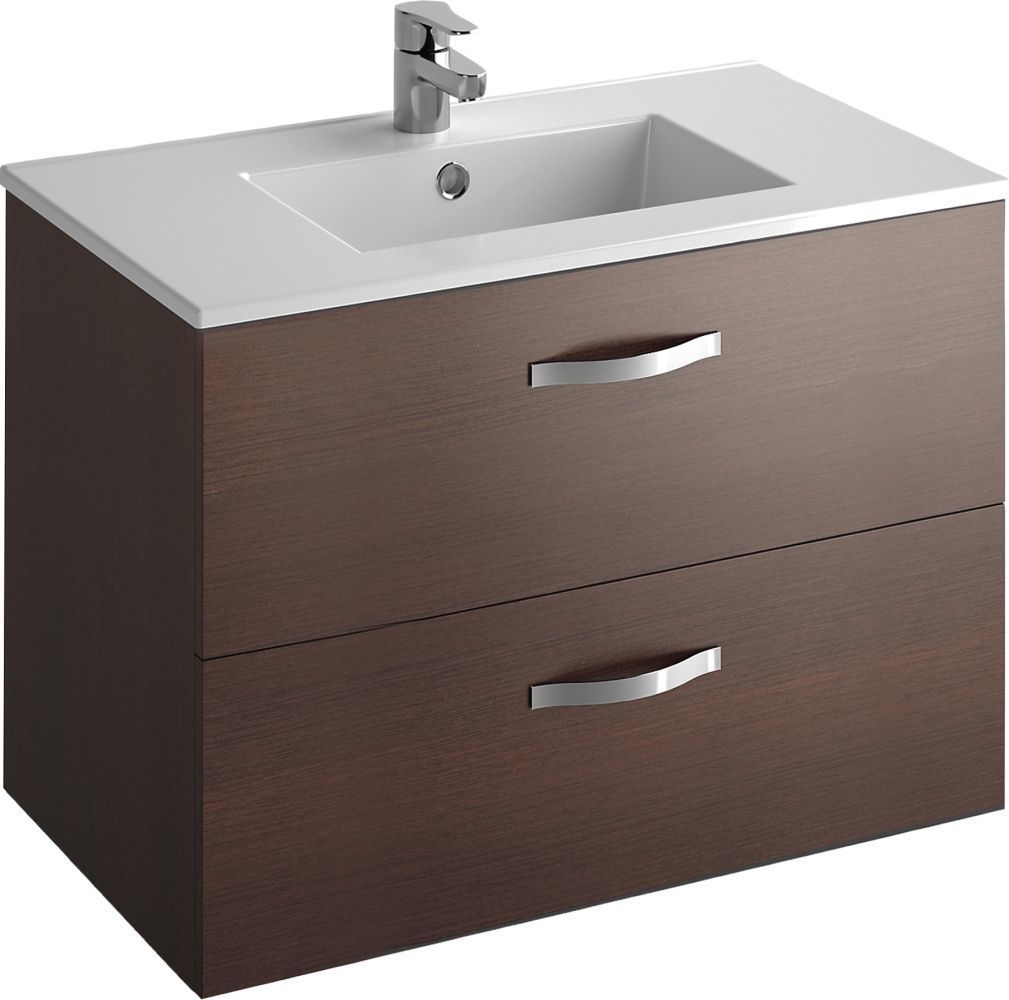 Тумба подвесная Jacob Delafon Ola 80 см EB391RU-NR с раковиной Ola 81x46 EXT112-00, 2 выдвижных ящика с механизмом «плавное закрывание», цвет темный дуб.