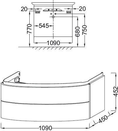 Характеристики тумба с раковиной Jacob Delafon (EB1105-V13+E4445-00)