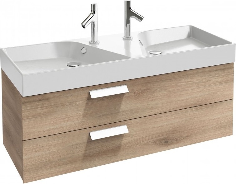 Тумба подвесная Jacob Delafon Rythmik 120 см EB1305-E10 с раковиной Rythmik 120 EXM112-Z-00, 2 выдвижных ящика с механизмом «плавное закрывание», цвет квебекский дуб.