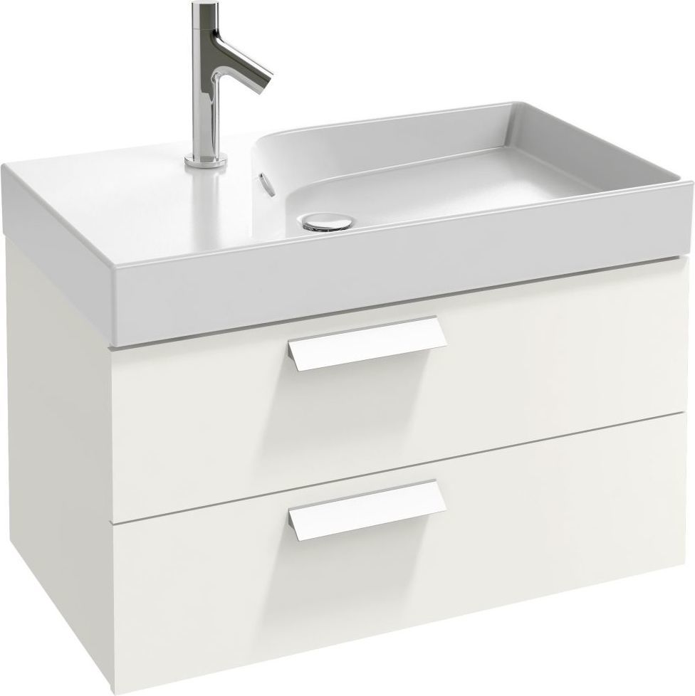 Тумба подвесная Jacob Delafon Rythmik 80 см EB1303-G1C с раковиной Rythmik 80 см EXO112-Z-00, 2 выдвижных ящика с механизмом «плавное закрывание» и 4 ящичка для хранения, цвет белый глянцевый лак.