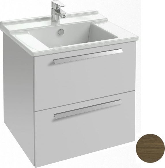 Тумба подвесная Jacob Delafon Struktura 57 см EB1276-E16 с раковиной Struktura 60x48 EXI112-00, 2 выдвижных ящика с механизмом «плавное закрывание», цвет ореховое дерево.