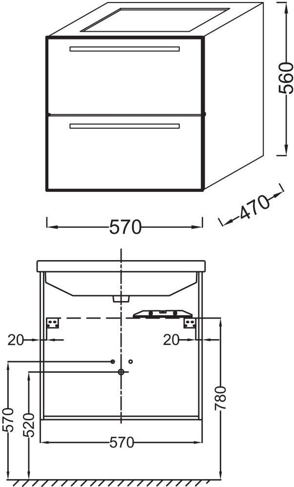 Тумба подвесная Jacob Delafon Struktura 57 см EB1276-N18 с раковиной Struktura 60x48 EXI112-00, 2 выдвижных ящика с механизмом «плавное закрывание», цвет белый.