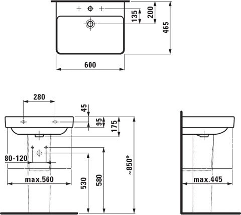 Характеристики тумба с раковиной Laufen (4.0223.2.110.260.1+8.1096.3.000.104.1)