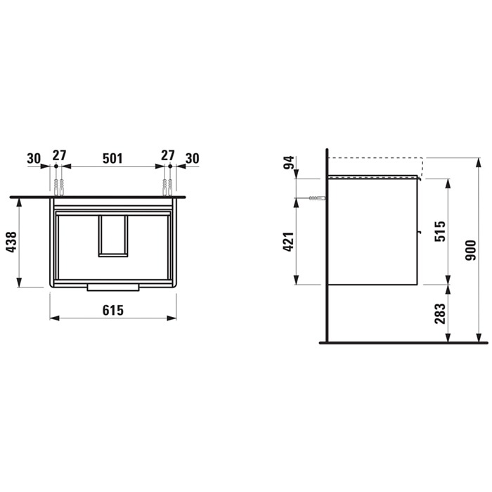 Тумба подвесная Laufen Base 4.0229.2.110.261.1 (615х515х438 мм) + раковина Laufen Pro S 8.1096.4.000.104.1 (650х95х465 мм), цвет белый.