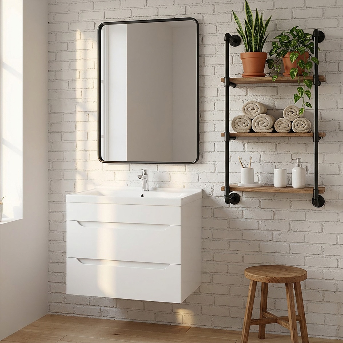 - Комплект удобен в установке и эксплуатации, позволяет эффективно использовать пространство и придает ванной комнате свежий и элегантный вид.