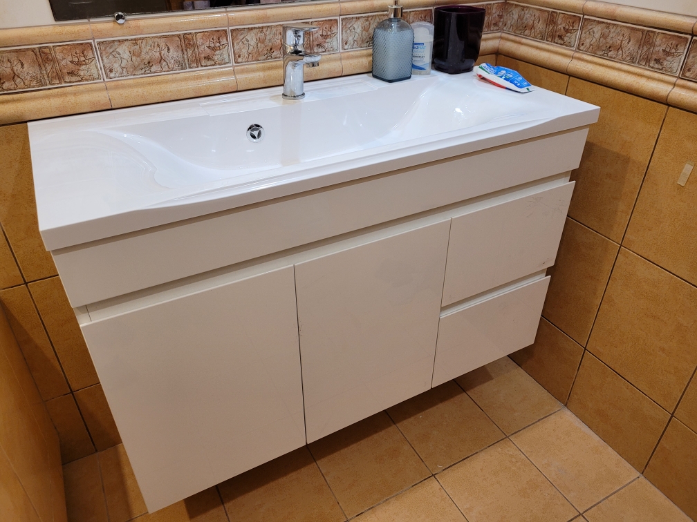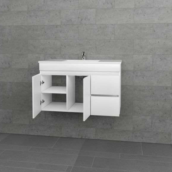 Тумба подвесная Mirsant Next 100/1 см с раковиной Premier 1000, 2 дверцы, 2 ящика, цвет белый.