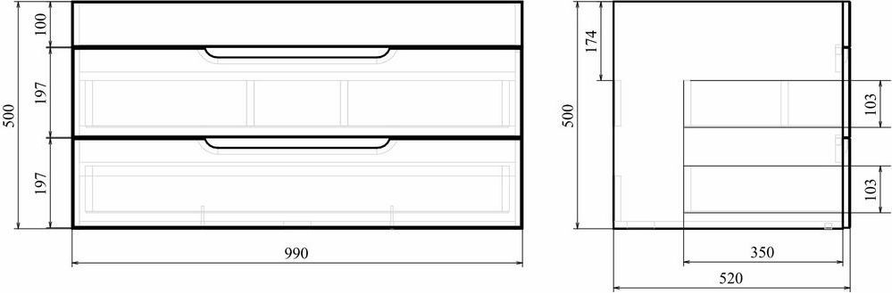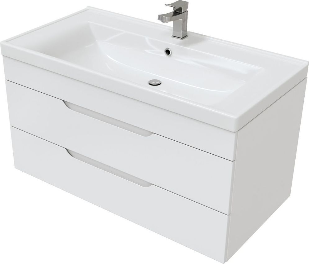 Тумба подвесная Mirsant Soho quadro 100/2 см с раковиной Deep 100, 2 ящика, цвет белый.