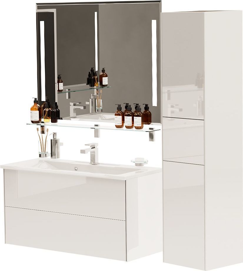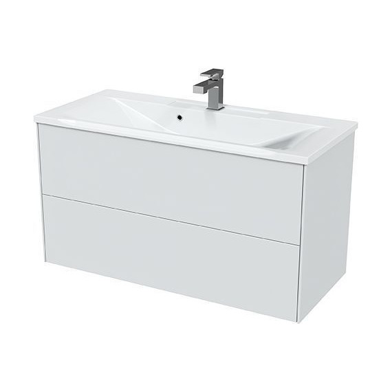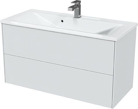 Тумба подвесная с раковиной Mirsant Ultra 100 см (раковина Next 100), белый глянцевый