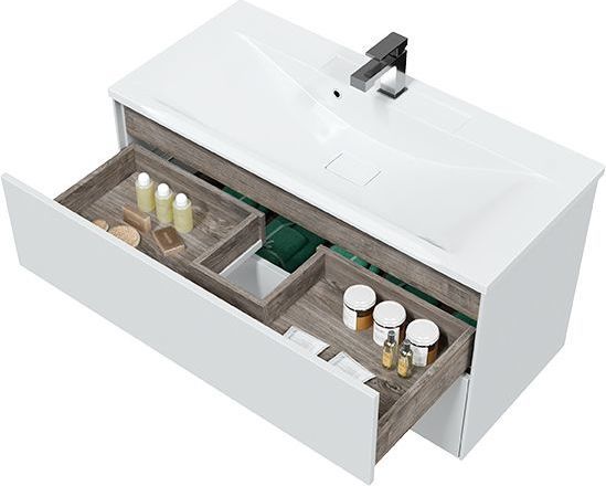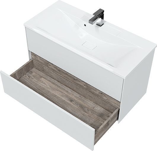 Тумба подвесная Mirsant Ultra 100 см с раковиной Premier 100, цвет белый матовый.