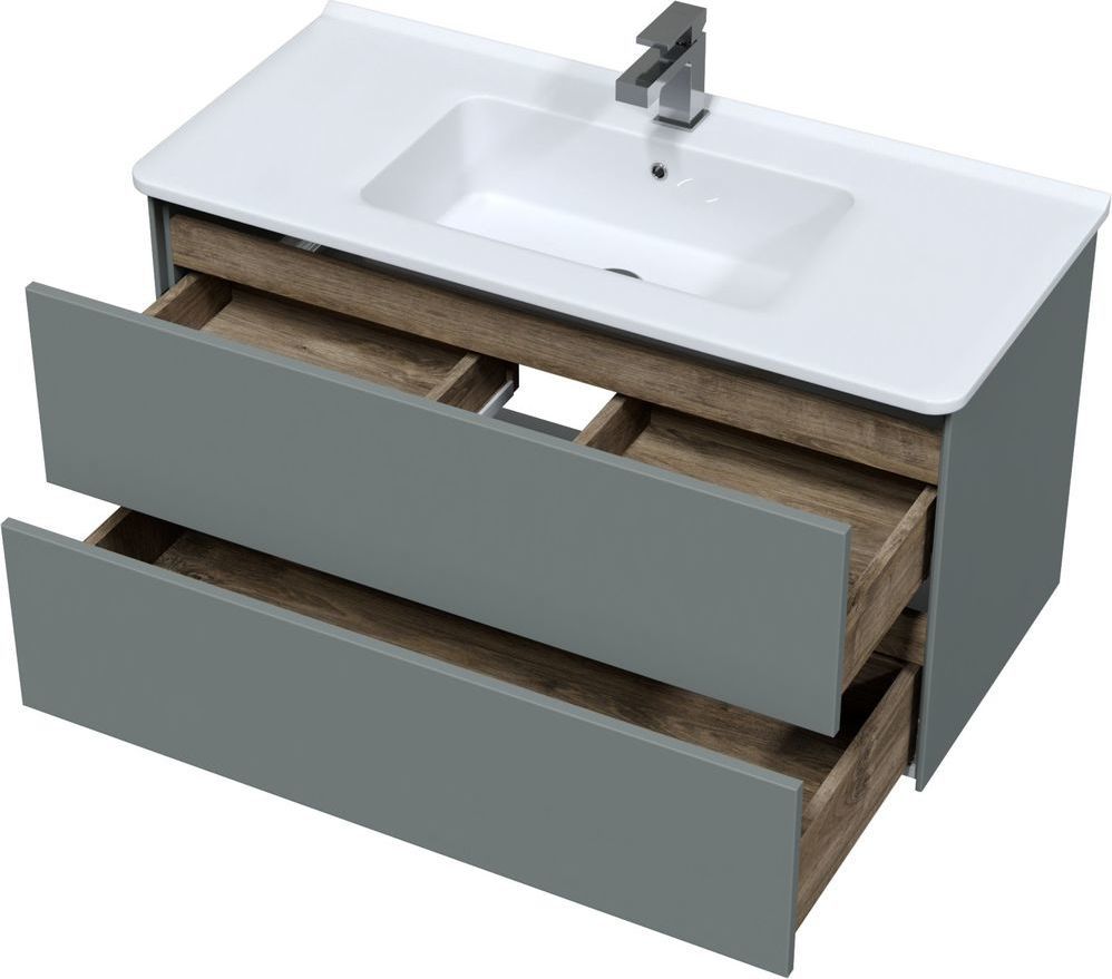 Тумба подвесная с раковиной Mirsant Ultra 100 см (раковина Premier 100), серый матовый